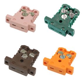 Termoelementkontakterna är polaritetssäkra och kan användas – beroende på höljets utförande – upp till 220 °C. Kontaktstiften är tillverkade uteslutande av solida termoelementlegeringar, vilket också säkerställer hög mekanisk stabilitet. Finns även i högtemperaturplast. Miniatyrtermoelementkontakterna är lämpliga för kabeldiametrar upp till 0,5 mm².